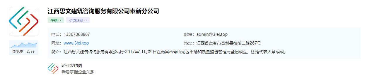 江西思文建筑咨詢服務有限公司奉新分公司: