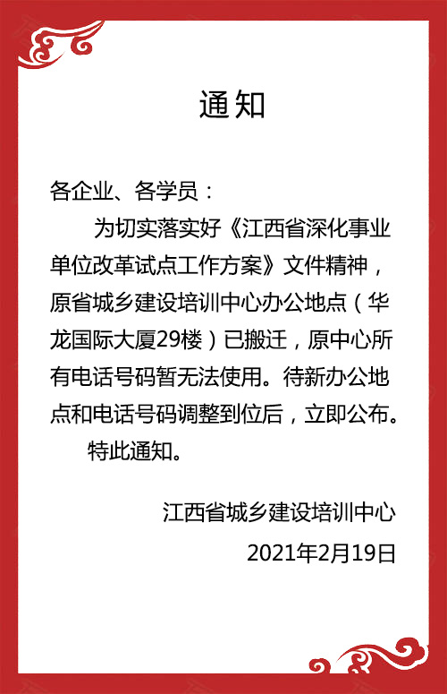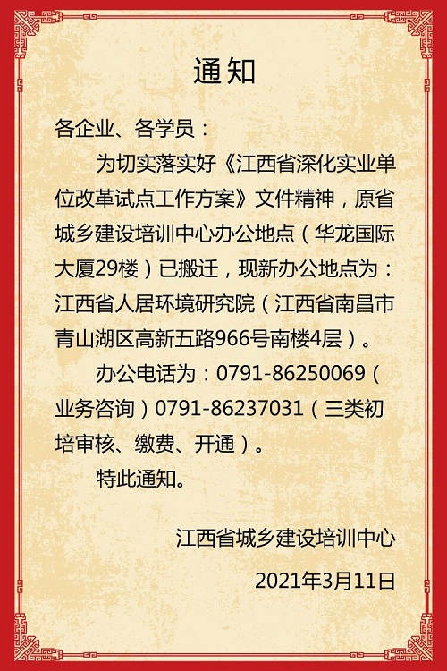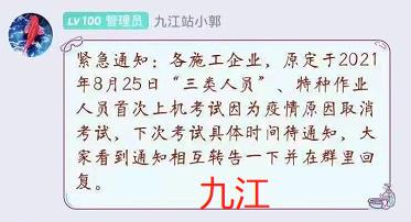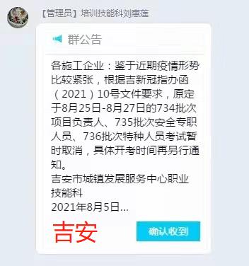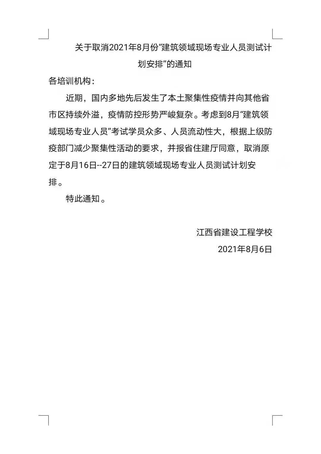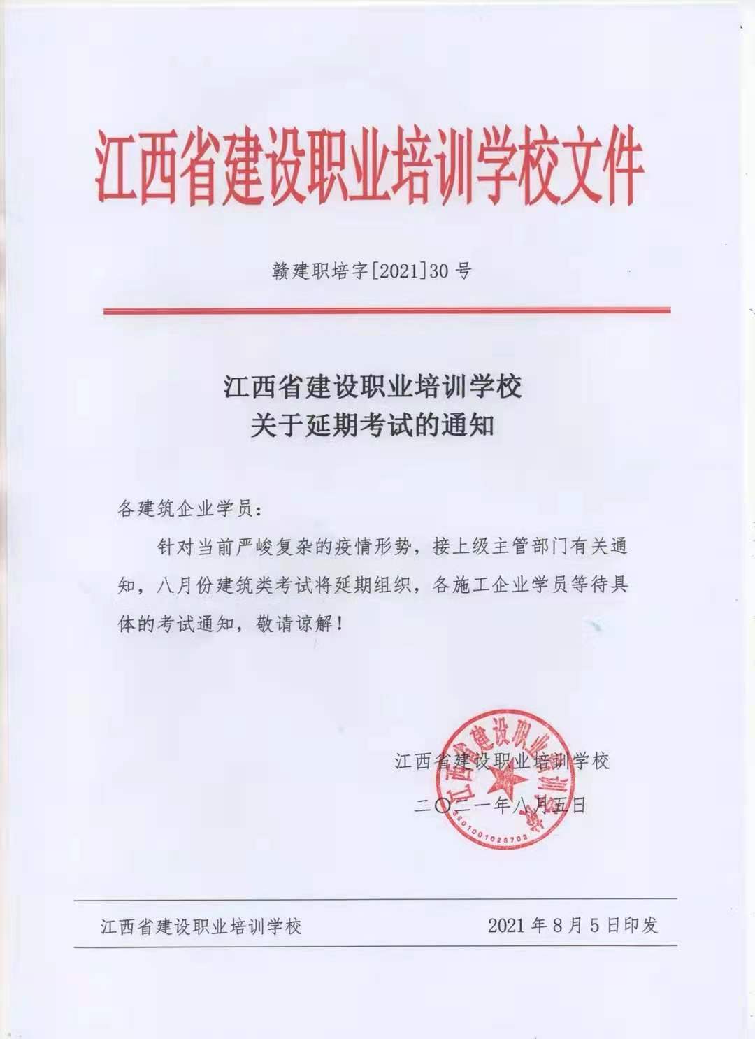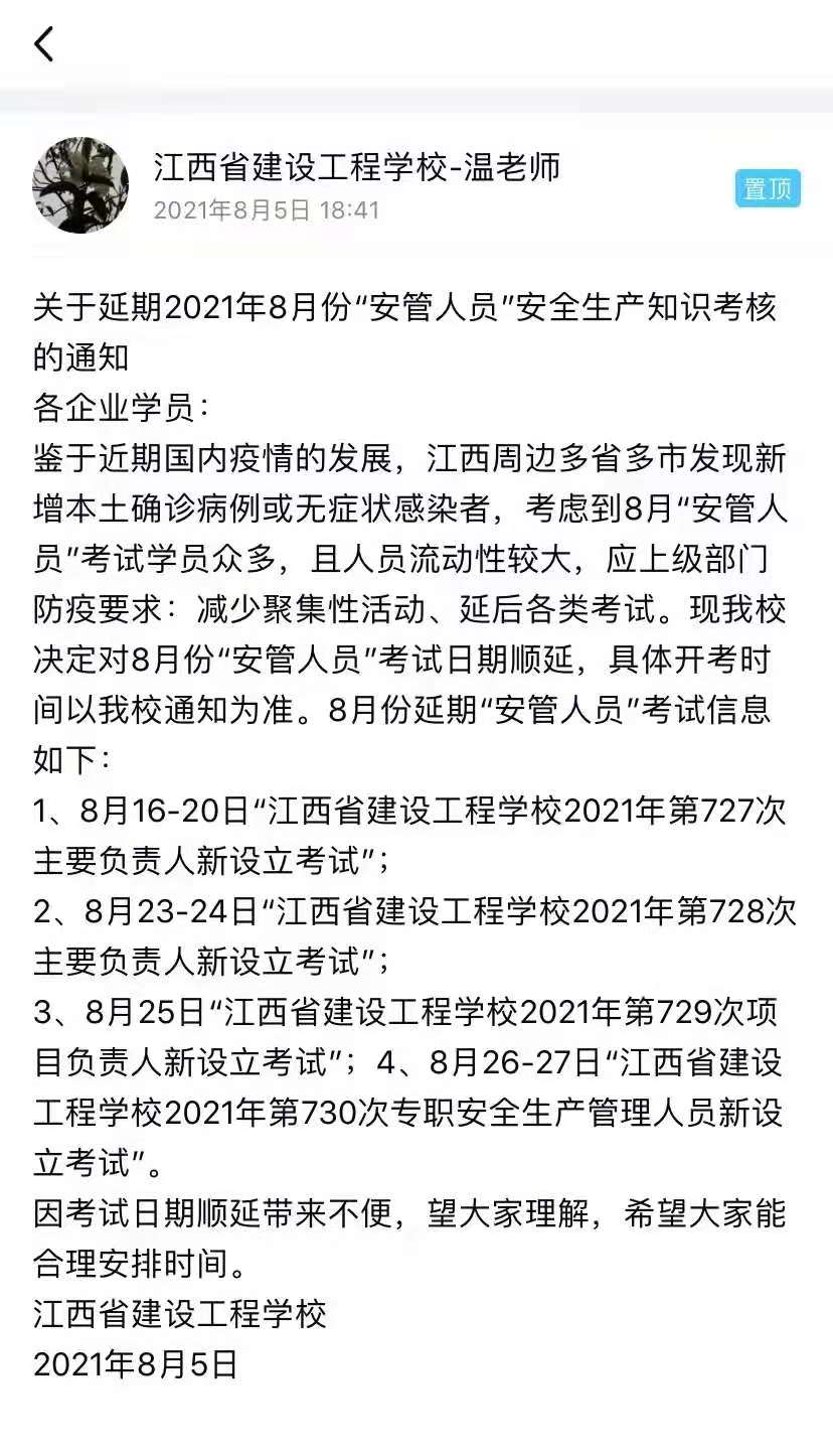 因國內中、高風險地區、重點地區、邊防陸路口岸城市實施動態調整,考試期間新冠肺炎疫情重點地區名單及防控要求,請企業、考生及時關注江西省防疫部門、南昌市防疫部門信息及江西省城鄉建設培訓中心QQ群(申請入群請先添加QQ號:2843177684提交審核材料方可入群)消息。