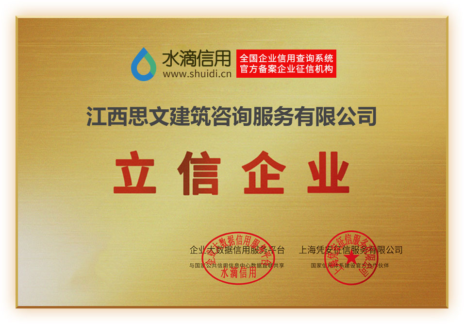 江西思文建筑咨詢服務有限公司,本著“客戶,誠信至上,以人為本”的原則,歡迎企業/公司/機構與本單位建立長期的合作關系。熱誠歡迎同行朋友前來參觀、考察、洽談業務。公司自成立至今,不斷吸取和借鑒同行先進的經營和管理理念,努力實現公司業務、管理等方面自我超越!