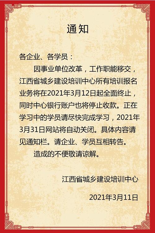 根據 《住房和城鄉建設部辦公廳關于推進住房和城鄉建設領域施工現場專業人員職業培訓工作的通知》 及江西省住房和城鄉建設廳相關工作要求,本培訓機構做出如下承諾: